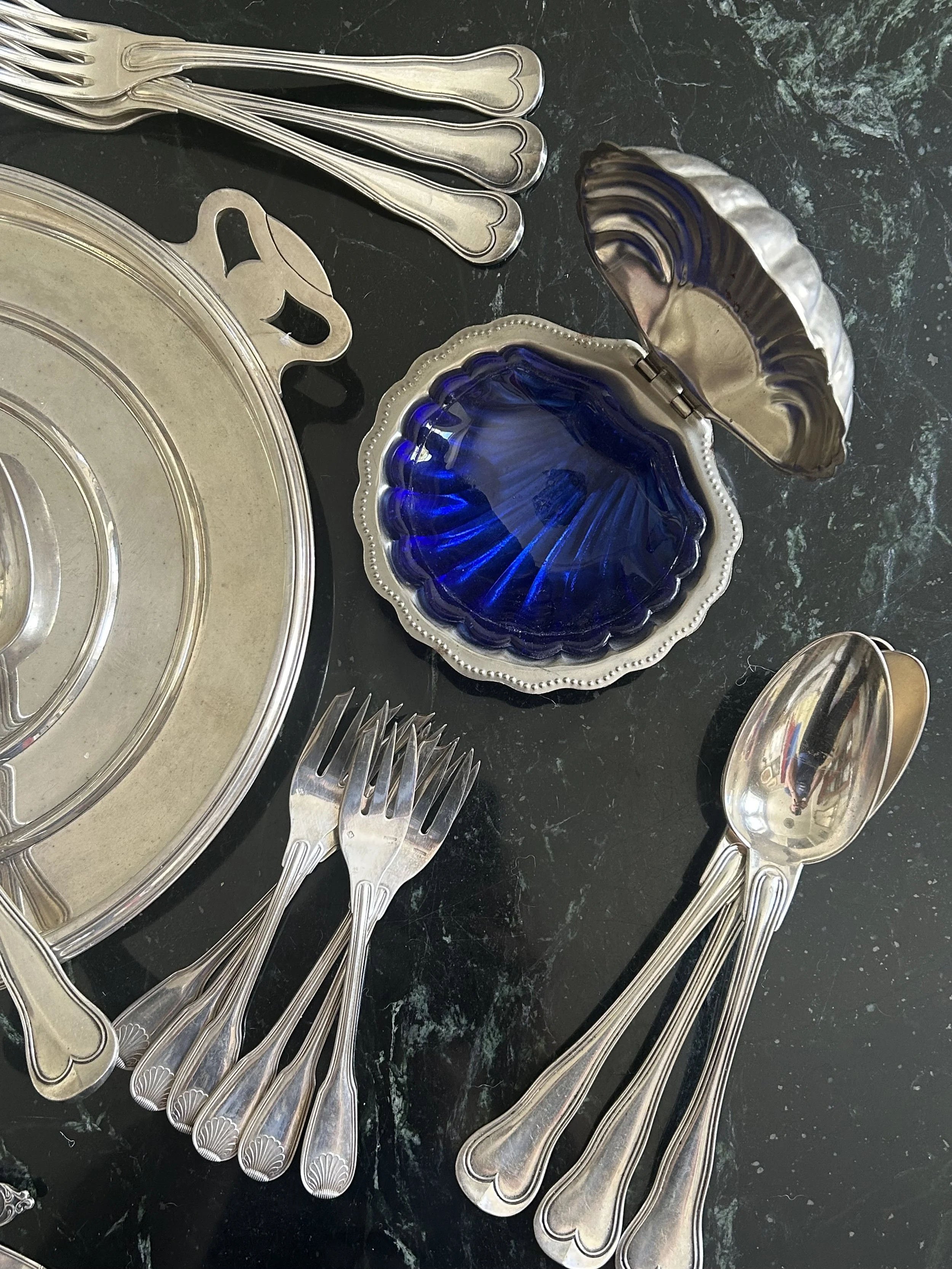 Lovely blue and red plate from the French Basque Country. This red and blue border is a popular style in the region and matches the shutters and trim on the traditional Basque houses. Found in Saint-Jean-de-Luz, France. Marked “Bodanviller” and “France” and “Blamont” on the underside.